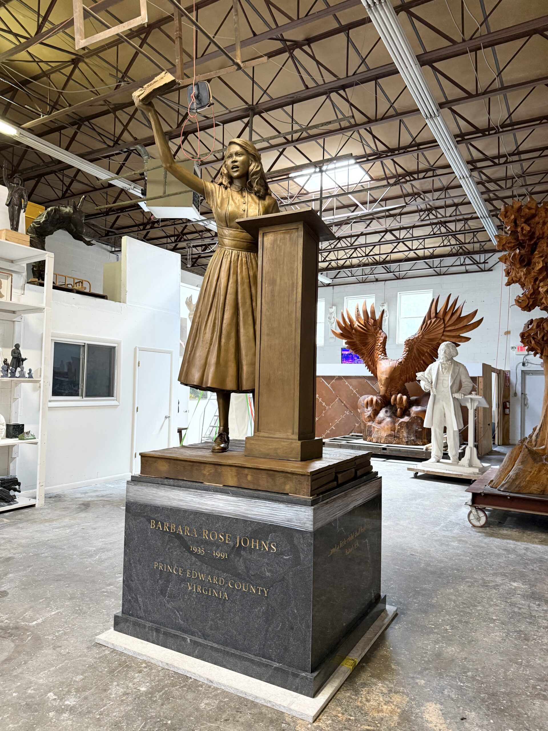I chose to capture the pivotal moment at the close of Barbara Johns’s impassioned speech—just before she led nearly 500 fellow students from Moton High School into downtown Farmville to protest the injustice of their segregated, “separate but equal” school.