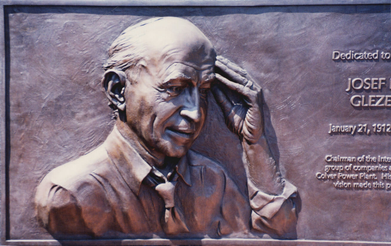 Josef Glezerman was chairman of a private water utility company. In this bronze relief, he is represented in a reflective pose.