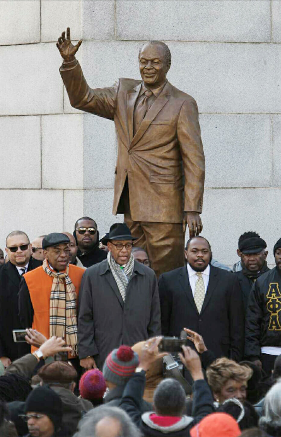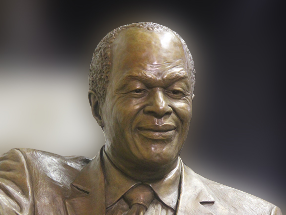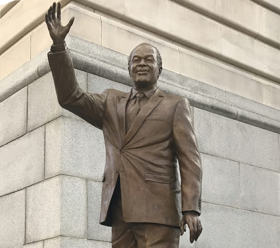 This heroic-sized bronze sculpture commemorates the life and work of Washington, D.C.’s beloved “Mayor for Life,” Marion S. Barry, Jr. The intention was to portray the mayor walking among and waving to his constituents, as he always had, highlighting his dedication to his community and Washington, D.C. After learning more about his life, legacy, and presence in D.C., his unique story and exceptional personality are expressed in this statue. Friendly, determined, and a skilled politician, he is portrayed as most remembered him, in his favorite suit and crocodile skin shoes. A quote from Barry’s autobiography is engraved in the plinth, explaining his efforts while holding D.C.’s most powerful office.