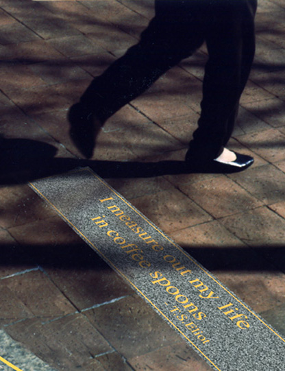 - FŌTERA® concrete sidewalk bands and text panels that reflect on the ephemeral nature of time