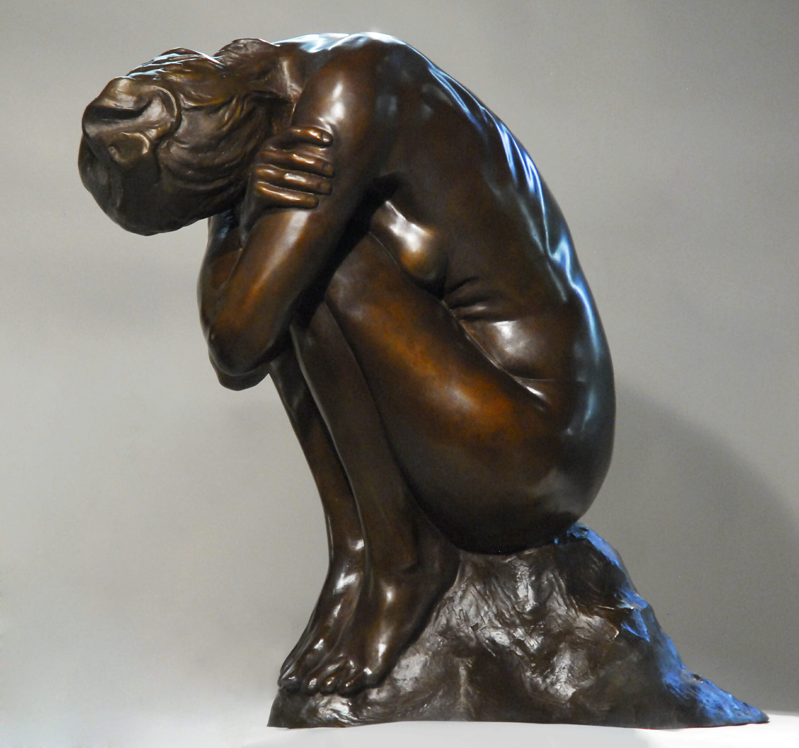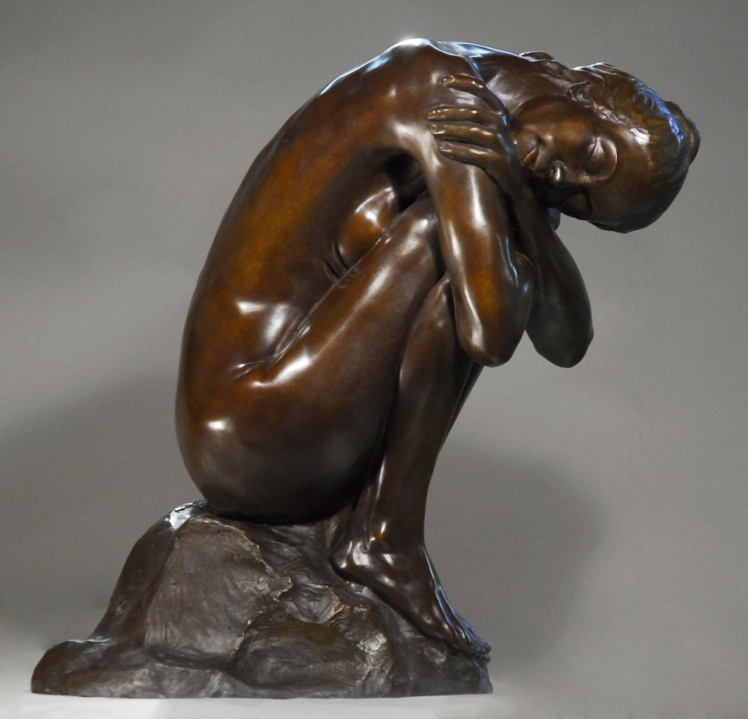 In this sculpture, Tsuru is portrayed with the delicate elegance of a crane, perched atop a boulder. Her pose conveys privacy, gentleness, and restraint, echoing the quiet beauty and sorrow of her story.